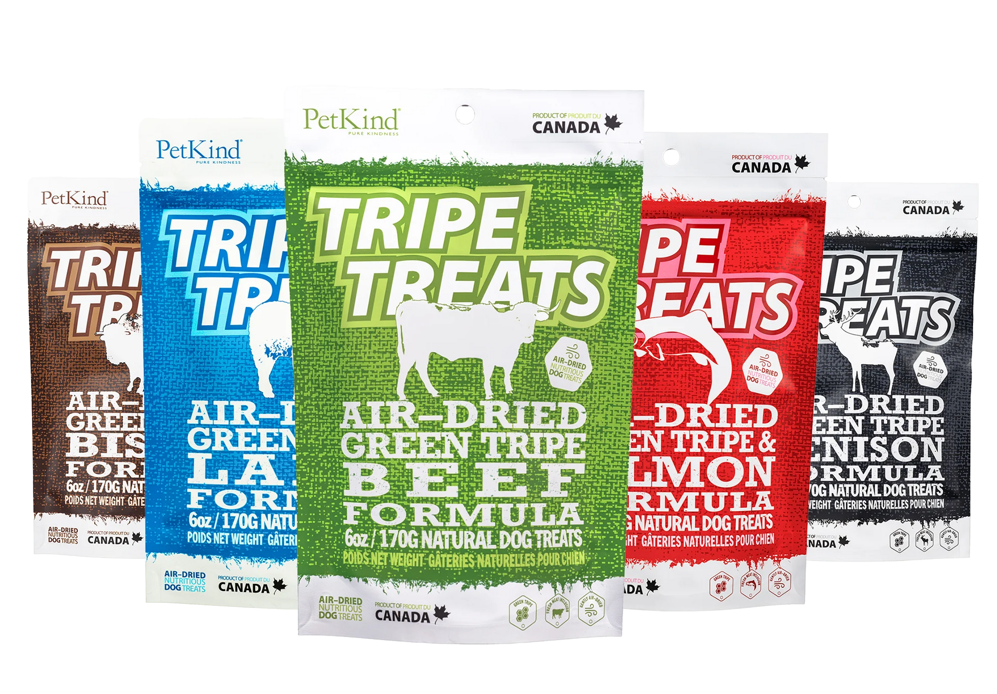 Des friandises à base de tripes séchées à l'air libre, fabriquées ici même à Vancouver, au Canada ! Riches en tripes vertes fraîches, ces friandises sont parfaites pour l'entraînement ou pour offrir une collation saine à tout moment !